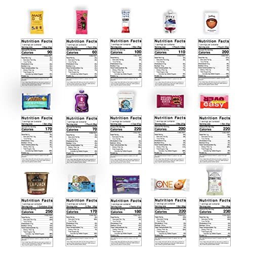 - SNACKS INCLUDED: Made Good Granola Bites, Bear Fruit YoYo, That's It Fruit Bar, Noka Superfood Pouch, Justin's Nut Butter, Pamela's Whenever Oat Bar, Mama Chia Squeeze Pouch, Purely Elizabeth Vibrant Oats, Nature's Bakery Fig Bar, Over Easy Bar, Kodiak Cakes Flapjack Cup, Bobo's Oat Bar, Legendary Foods Tasty Pastry, One Bar, Symmetry Breakfast Bar.