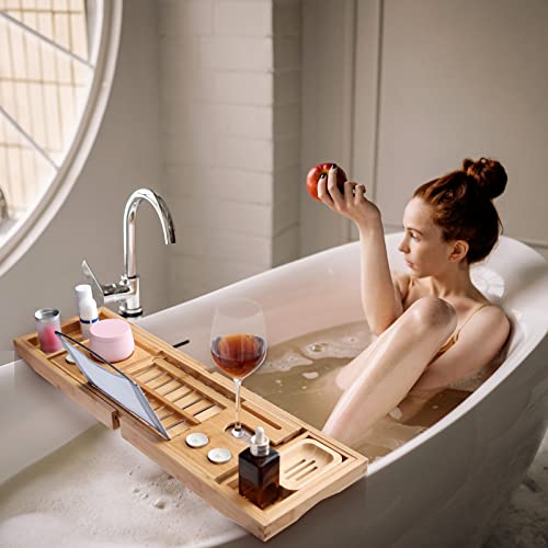 - EXPERIENCE MEANINGFUL MOMENTS: Enjoy Romantic baths for two, the best way to spark romance, indulge by living a luxurious bath time experience. Make our Luxury Bathtub Tray Caddy the best part of your day. Enjoy your favorite cup of tea, read a book, or watch that show you are in love with. It is the perfect gift for that loved one, a birthday, anniversary or mother’s day.
