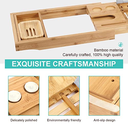 - ADJUSTABLE SIDES TO FIT YOUR BATHTUB: our bathtub tray caddy is carefully designed with your needs in mind. Sides are adjustable to fit any bathtub size with nonslip silicone grips to prevent any sliding. It expands from 27.55 in to 41.73 in, allowing it to fit even the widest bathtub