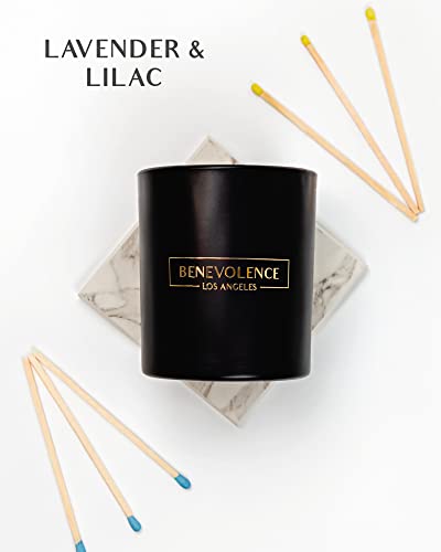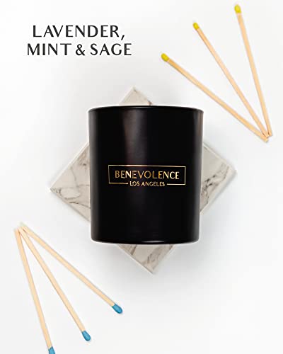 Benevolence LA Scented Candle - Aromatherapy Candles - All Natural Soy Wax Strong Scented Candles with Matte Black Glass Gift Boxed (Medium, Rose & Sandalwood)